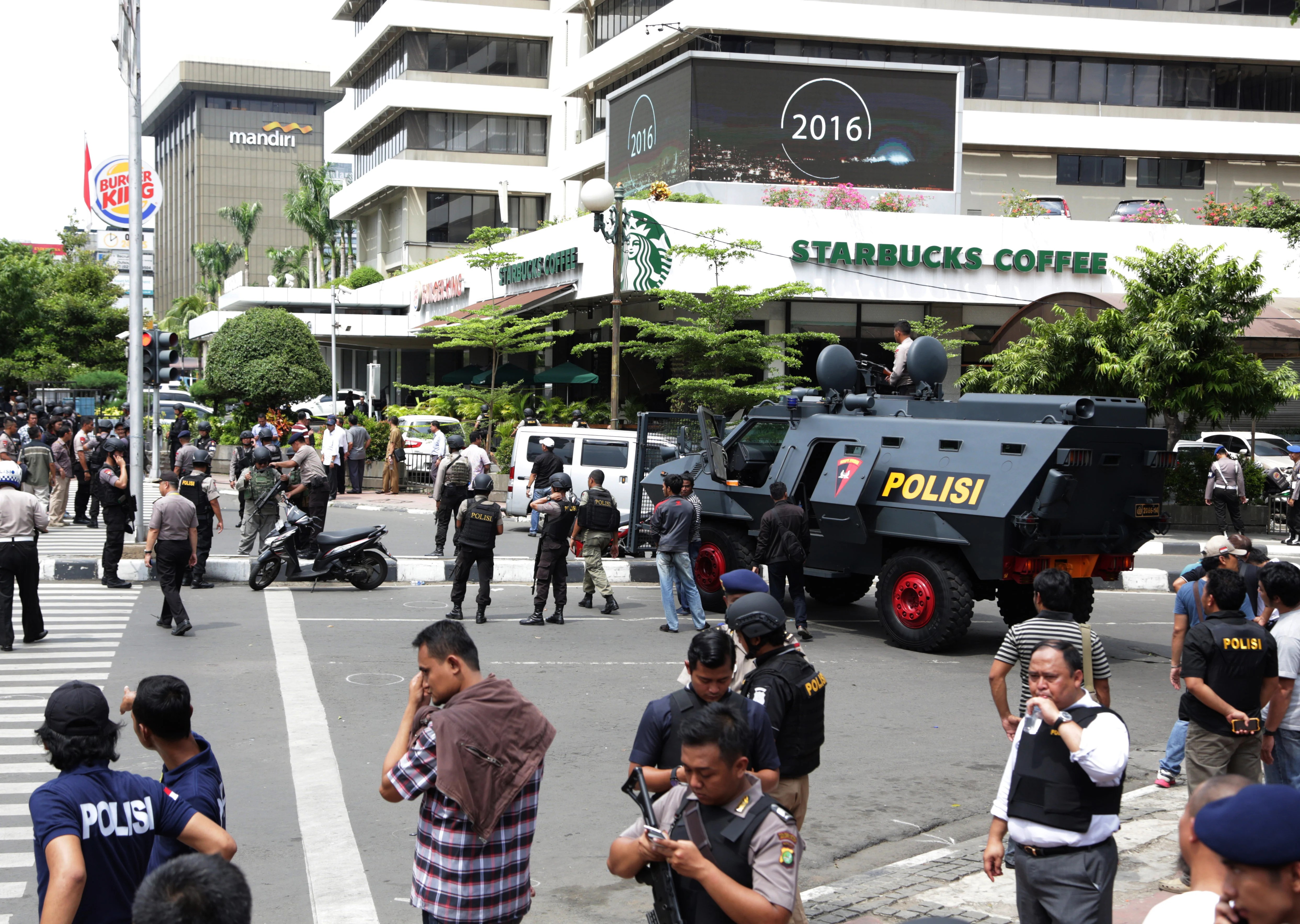 A group of people stands outside a Starbucks coffee shop Terrorism is a concern in Indonesia and attacks have happened in the past. Notable incidents include the 2016 Sarinah attackand the 2018 attack on the police headquarters. Since then, Indonesian security forces have stepped up counterterrorism work, and large attacks in the capital have become less common. High-traffic places such as hotels, markets, shopping centers and religious sites often have visible checks, metal detectors, bag inspections, and armed guards.